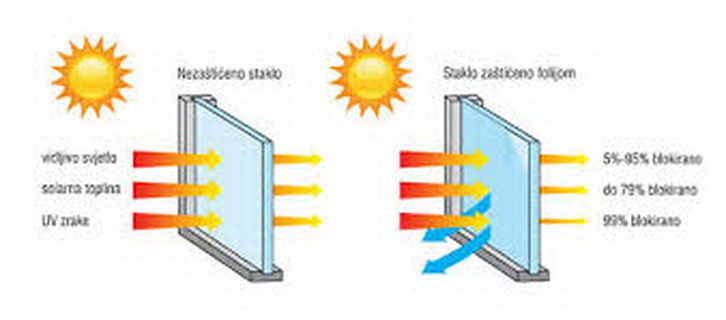 Folije za stakla, zastita od sunca, sa efektom „silver-ogledalo”, omogucava zastitu privatnosti,a ujedno stiti od sunca i smanjuje temperaturu u prostoru do 12C,a pritom pruza totalnu UV zastitu.